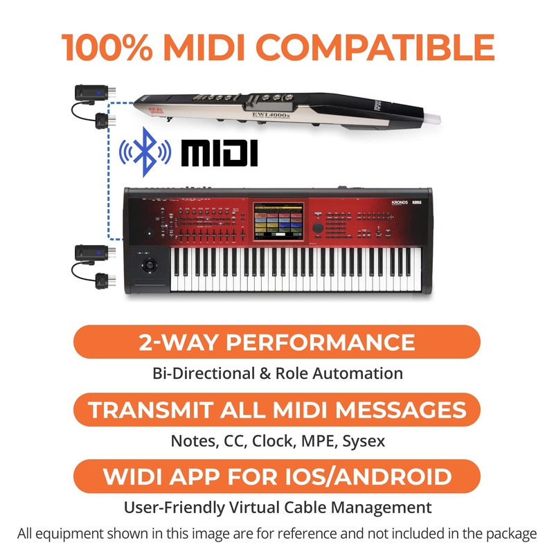 - [Plug, Pair & Play] Pair automatically between WIDI devices and Bluetooth MIDI controllers. Send all MIDI messages, incl. SysEx & MPE. Connect manually with iOS, macOS, Win10/11 & Android via simple step by step guides. Detachable design for keytar & EWI.