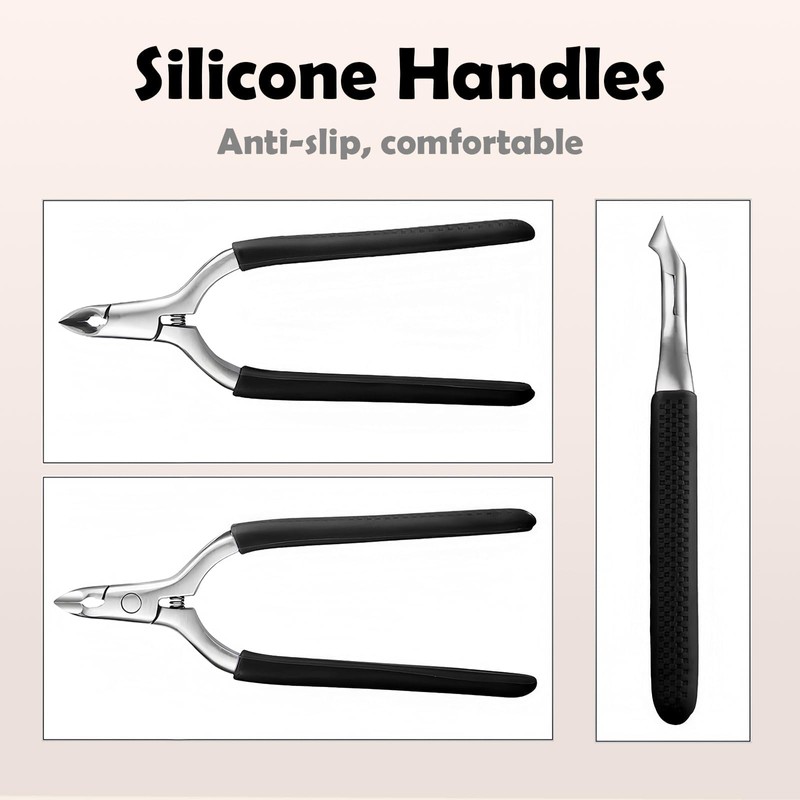 - Ergonomic Non-Slip Grip: Lightweight design with silicone handles ensures secure control and comfort, preventing slips during detailed manicure kit for women applications and delicate cuticle cutter work