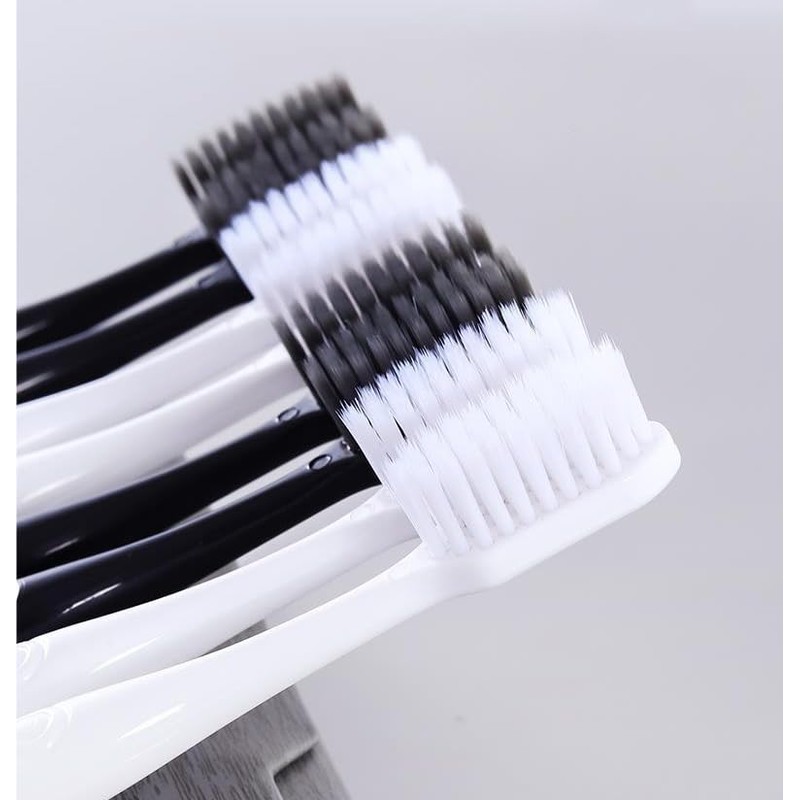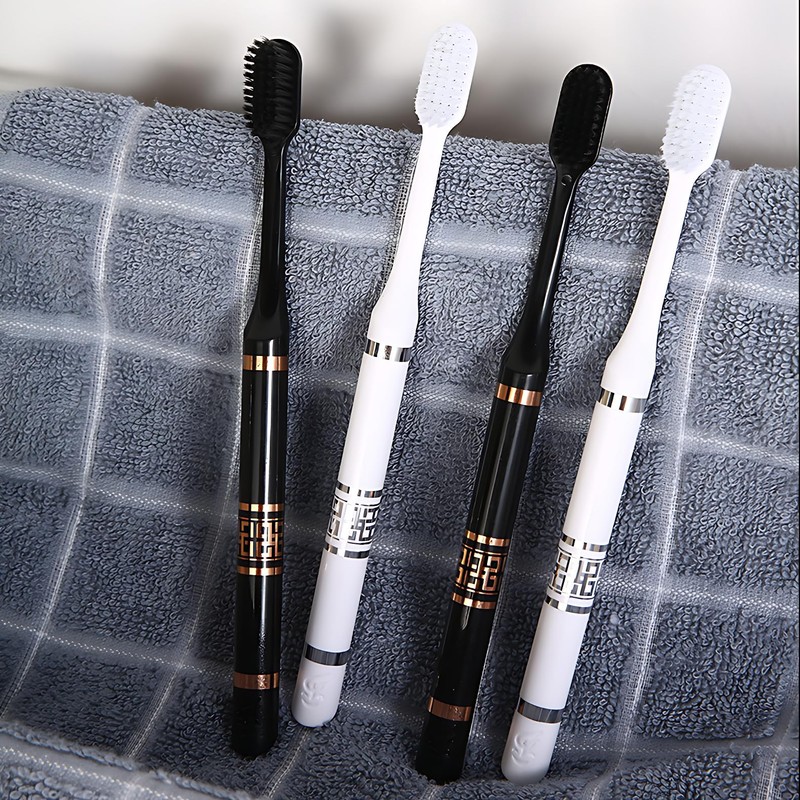 CMHX Extra Soft Bristle Toothbrushes Compact Size Head Floss Bristle Good Cleaning Effect for Sensitive Teeth Gum Recession Daily Oral Care Protect Fragile Gums  White and Black,Golden pattern