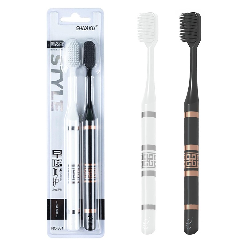 CMHX Extra Soft Bristle Toothbrushes Compact Size Head Floss Bristle Good Cleaning Effect for Sensitive Teeth Gum Recession Daily Oral Care Protect Fragile Gums White and Black,Golden Pattern 2 Pack