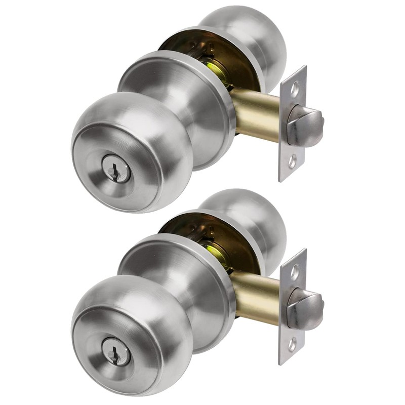 CML Hardware (2 Pack) Entry Door Knob, Keyed Different Door Lock Sets in Solid Stainless Steel for Entrance, Exterior and Interior, Round Ball Handle
