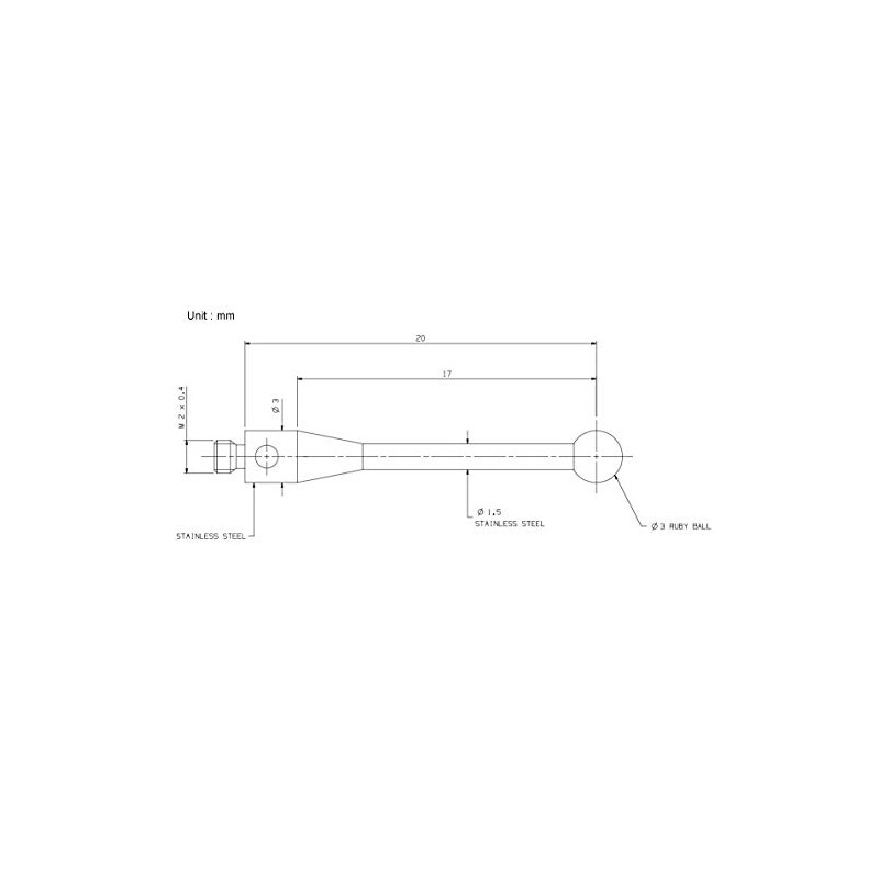 • 3mm ruby ball probe styli tip,20mm long,M2 thread.