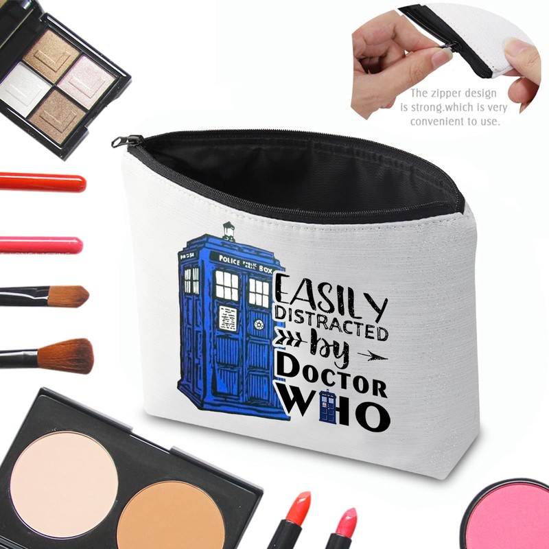 CMNIM Doctor TV Show Merch Easily Distracted by Who Makeup Bags Doctor Fans Gift TV Series Inspired Geek Travel Toiletry Bag (Easily Dr Who MB)