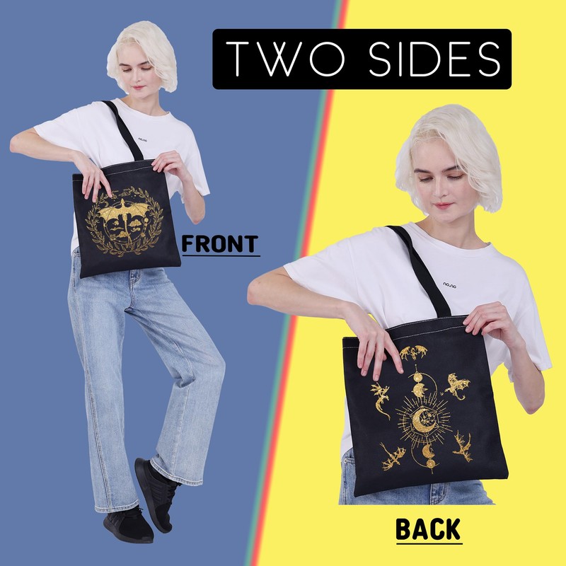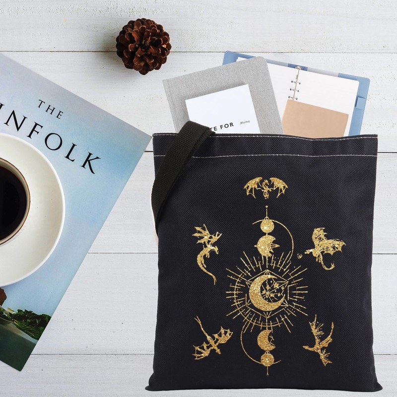 CMNIM Fourth Wing Book Tote Bag Basgiath War College Inspired Merch Dragon Rider Fly or Die Shoulder Bag Fantasy Bookish Gift (FW More Dragon TB)