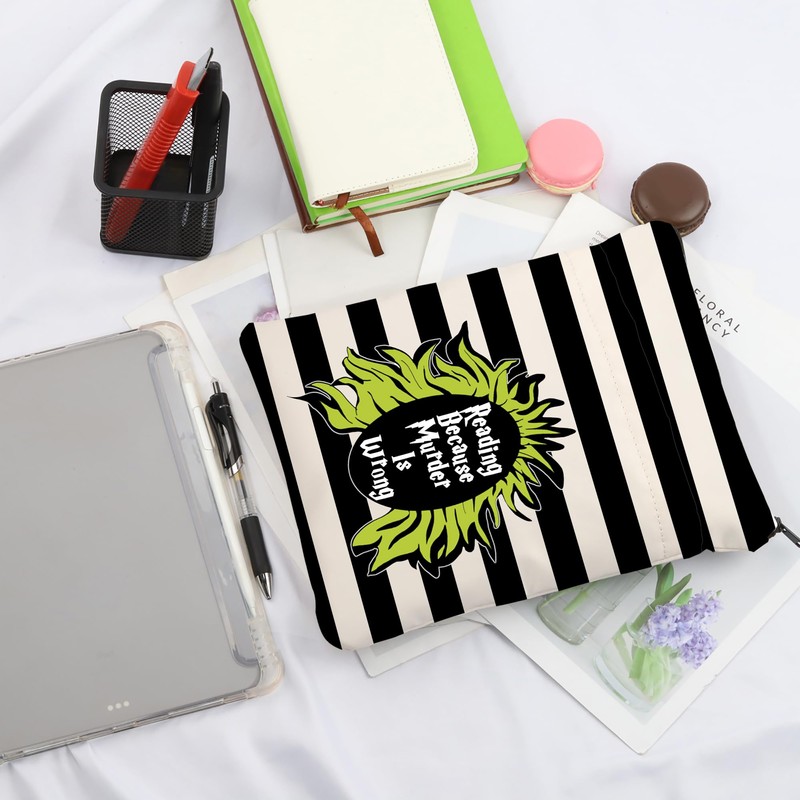 CMNIM Horror Movie Merch Gift Be-tlejuice Character Book Sleeve Reading Because Murder is Wrong Book Protector for Fan (B-tlejuice BS)