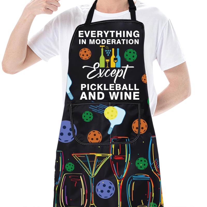 - Pickleball Wine Lover Apron - 2 Practical Pockets Funny wine Apron can keep your utensils, recipes, phone, or any other cooking tools. Whether cooking, barbecuing, or painting, can wear this apron, which is both good-looking and very practical.