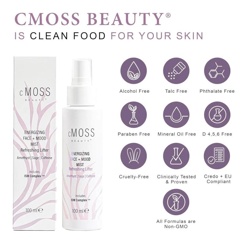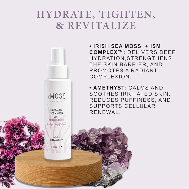 cMOSS BEAUTY Sea Moss Infused Face and Mood Lifting Mist with Real Amethyst, Caffeine, Sage,