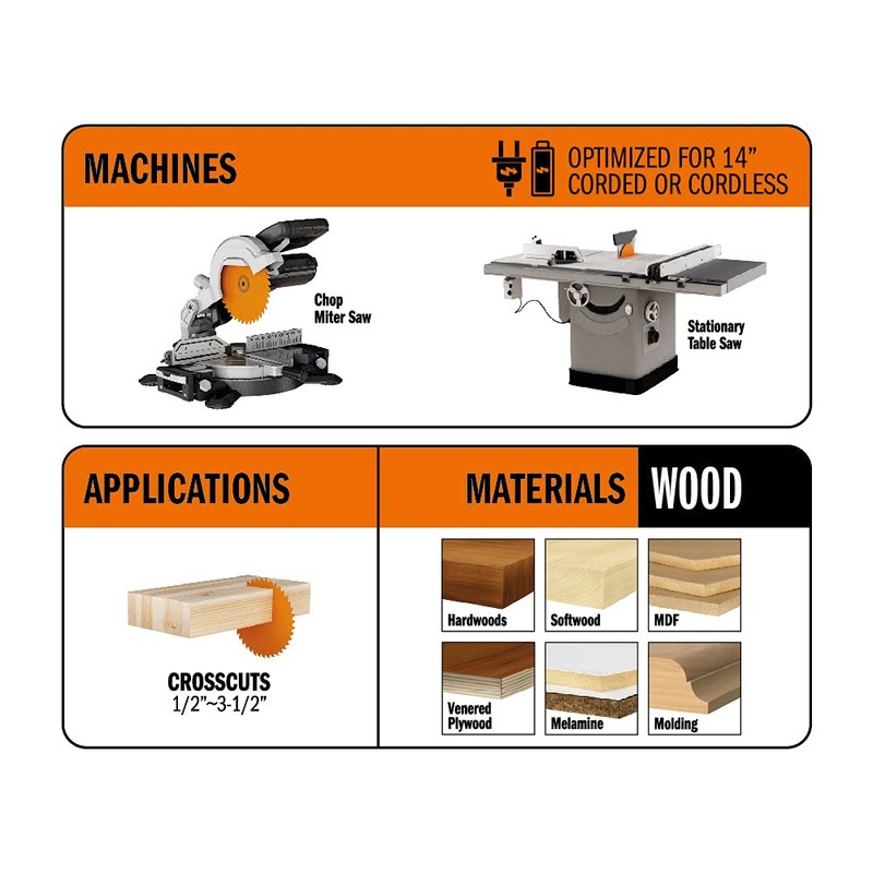 - Special Silver-Copper-Silver Tri-Metal Brazing allows teeth to handle high stress and impact especially when cutting harder woods and composite material.