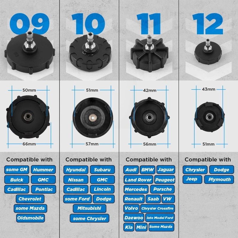 12PCS Brake Bleeder Kit Master Cylinder Adapters Set With Japanese Quick Connector The master cylinder adapter kit includes a rectangular adapter, 11pcs round adapters, and a quick connector, suitable for a variety of models.It is compatible with most other manual brake fluid bleeders and manual fluid pressure bleeders. Utilize this master brake bleeder adapter kit for effortless removal and refilling of fluid throughout your entire braking system. |