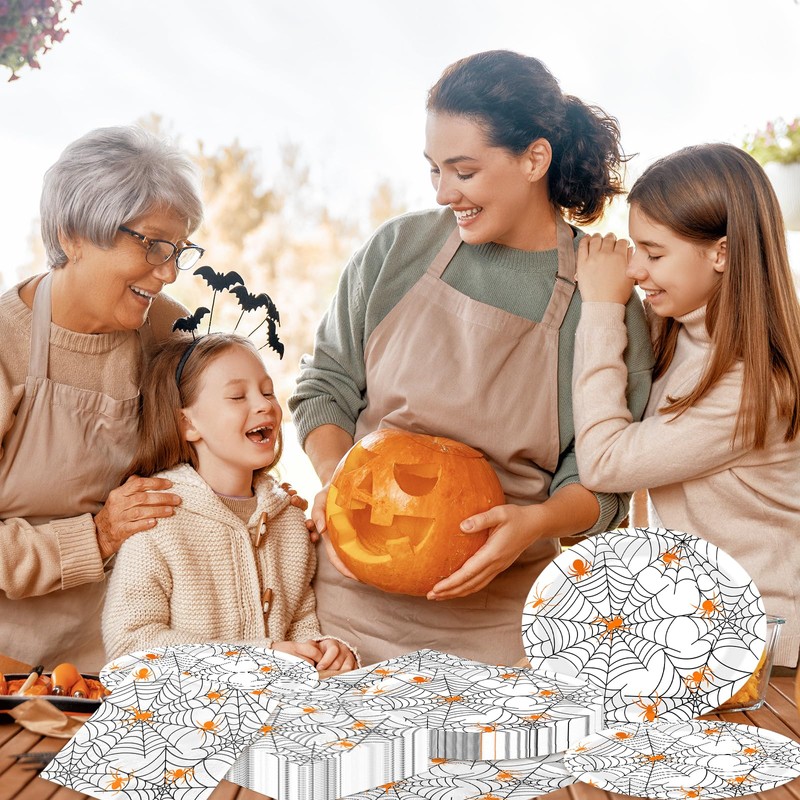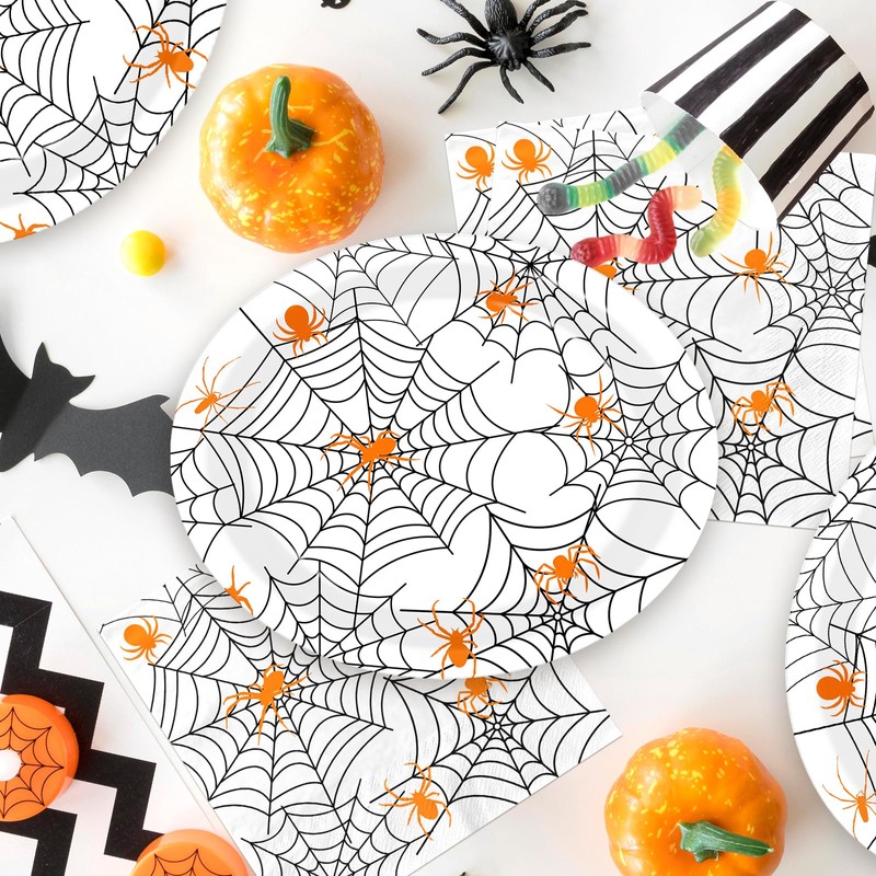 - 【Spider Web Plates and Napkins】Our Halloween party supplies spider webs disposable plates and napkins are suitable for both indoor and outdoor use. After the party, just throw it away,which save you much time in cleaning and have more time for other planning activities.It's suitable for Halloween decorations party.