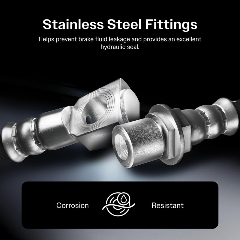 - Stainless steel fittings for added strength and corrosion resistance, helps prevent brake fluid leakage and provides an excellent hydraulic seal-2-2