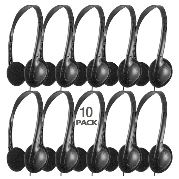 CN-Outlet - Paquete de 10 auriculares escolares a granel para estudiantes de aula, niños, niños, niñas, adolescentes y adultos (10 negro)
