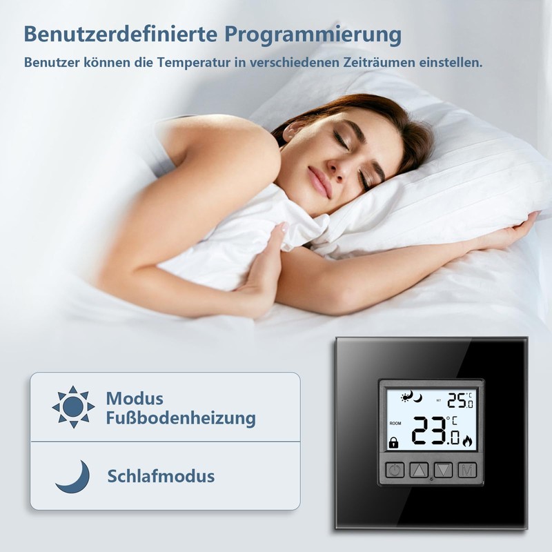 - Free Choice Between Two Modes The thermostat can manually adjust the daytime mode and sleep mode, making your indoor temperature more comfortable.