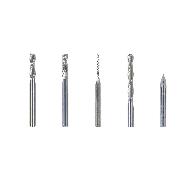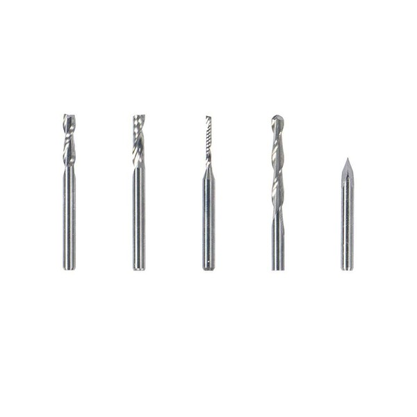 This package contains five CNC bits (shank diameter:3.175mm):