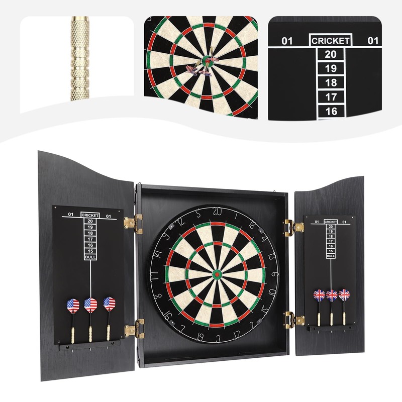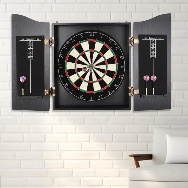 CNCEST Electronic Dart Board Cabinet Set, Dartboard, Classic Dartboard Cabinet, Dart Boards Set (Black,MDF and Sisal)