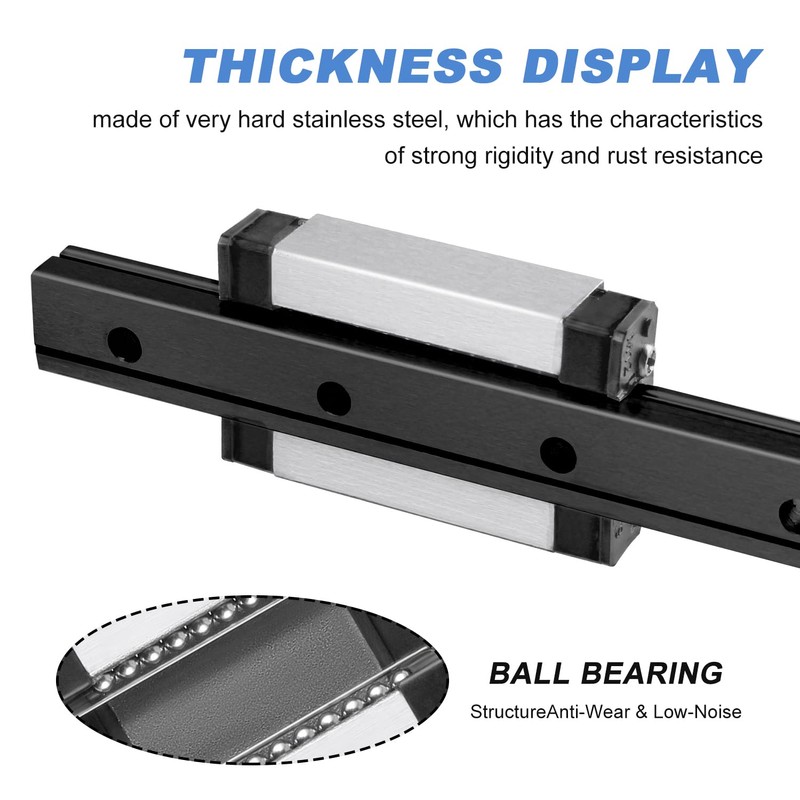 - High Quality Material - The linear rail is made of very hard stainless steel, which has the characteristics of strong rigidity, high precision and rust resistance. It adopts four-point contact design, which can bear the load in all directions.