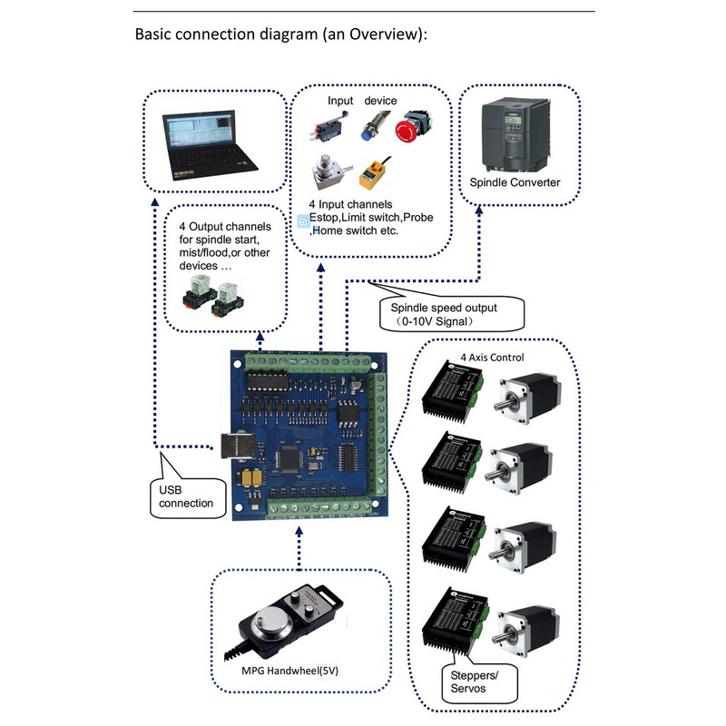 - ♞【4 Axis USB Mach3 Control Board】USB interface is applicable to any netbook, notebook, desktop, tablet and other PC compatible computers with USB interface. This control board does not require any drivers to be installed. As long as Mach3 can run, the control card can be used; Support computer system:Windows 2000/ XP / Windows 7/8/10; Maximum step-pulse frequency is 100KHz,which is suitable for the servo or stepping motor;