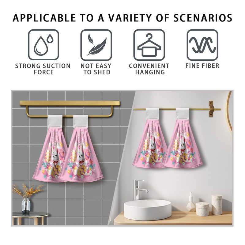 - Ingenious Design: The happy Easter rabbit hanging hand towels with a magic sticker hook ,the towel can be easy to hanger and use, can be hung on any place that needs to be washed or wiped, and the magic sticker is strong and hard to drop