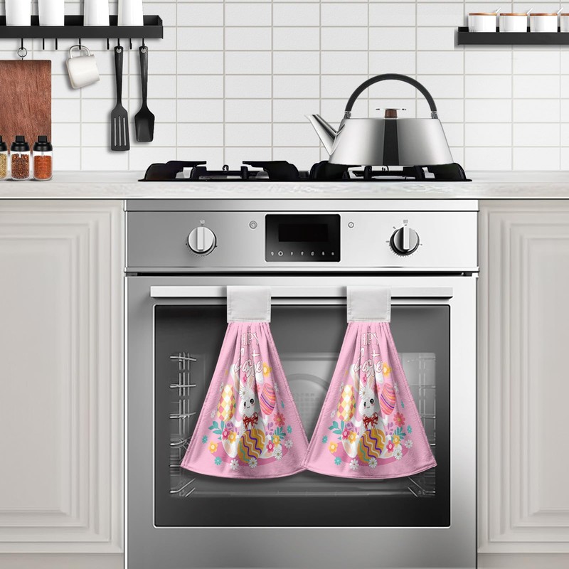 - Multipurpose: These bunny colorful eggs kitchen towels with hanging loop are practical throughout your home. For example, keep one hanging on your oven, add one outside on the grill, even on the refrigerator handle, cabinet handle, sink bracket