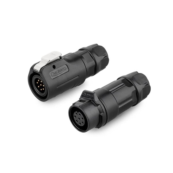 - LP12 8-Pin Connector Overview: This male plug and female plug combination are designed for plug/unplug connections with an IP68 waterproof protection rating (when mated), ensuring excellent dust and water resistance.