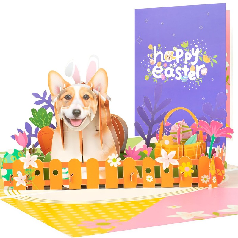 - 【Dog Easter Pop Up Cards】CNLITIHEKA pop up Easter greeting cards are full of Easter fun and charm. When opened a corgi appears in front of you, surrounded by many colored eggs, carrots, baskets and plants.