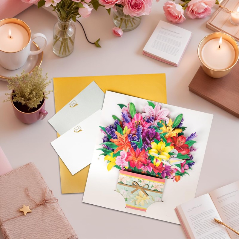 - 【Pop Up Flower Bouquet Cards】This 3D flower card features a three-dimensional design, unique and exquisite paper craft design, the box is filled with beautiful lily flowers, as a holiday gift, it will surprise and delight your mom, lover or friends.