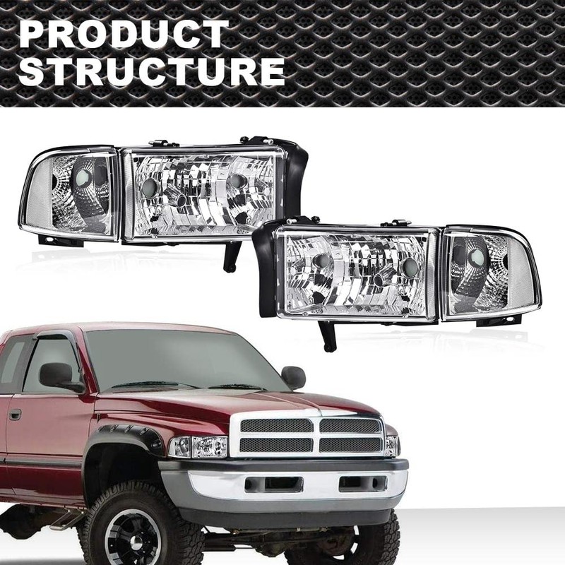 Headlights Compatible with Dodge Ram 1500 2500 3500 1994-2002 Head Lamp Driver & Passenger Side Clear lens Chrome Housing Clear Reflector 55076749AD 55076748AD 55076749AO