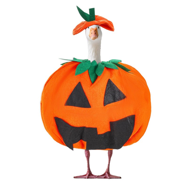 Festive Pumpkin Theme: Vibrant orange fabric with black jack-o'-lantern details creates eye-catching Pumpkin Goose Outfits for autumn.