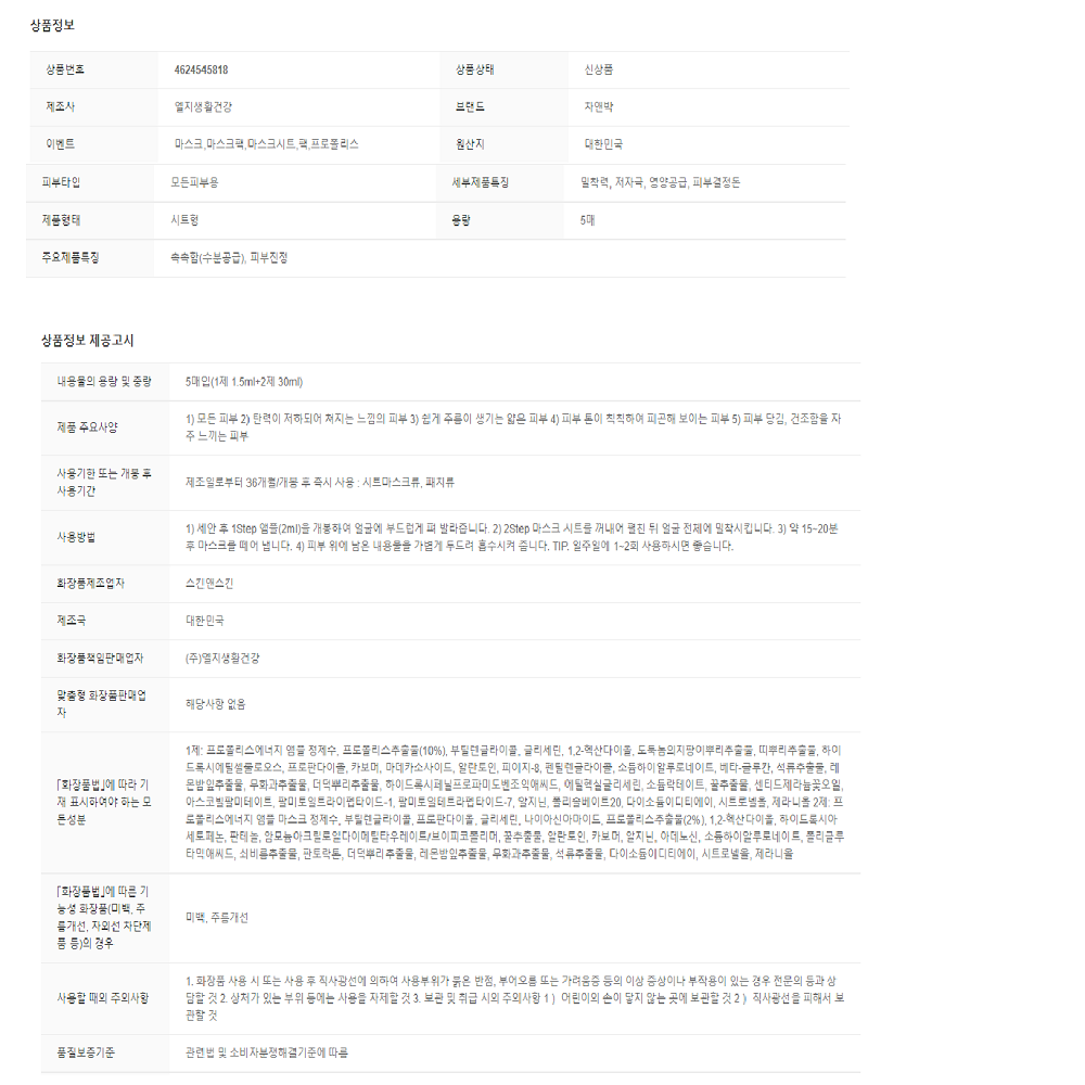 CNP 프로폴리스 에너지 액티브 앰플 마스크 5매