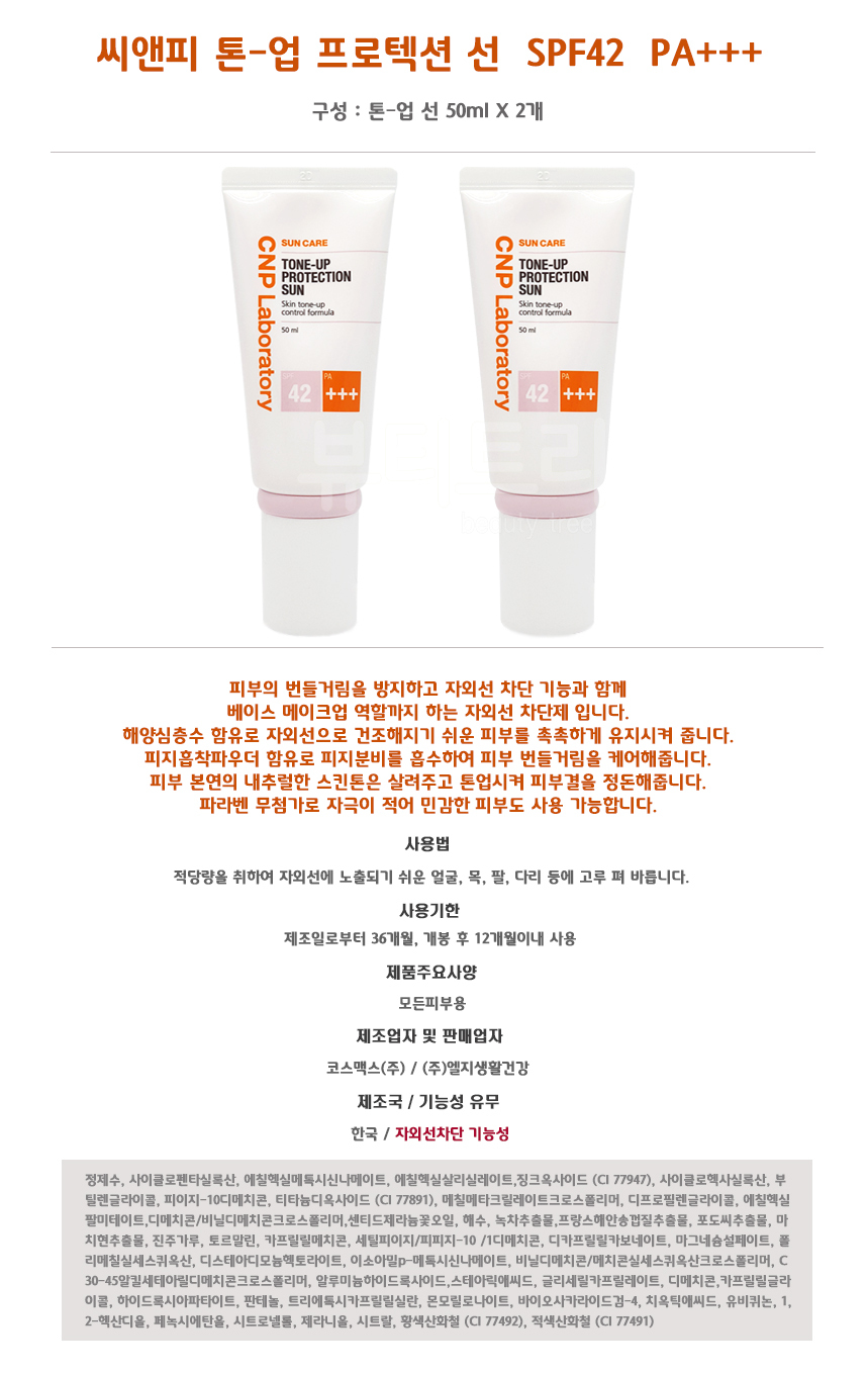 CNP 톤 업 프로텍션 선 50ml + 50ml썬크림