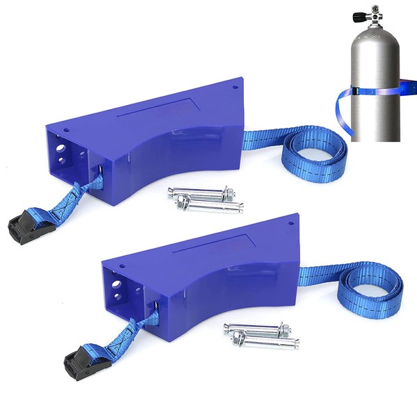 CNQLIS 2 Pcs Cylinder Holder ABS Cylinder Wall Mounted Bracket with Screws and Safety Belt Fixed Support for 40L Gas/Oxygen Cylinders (Blue)