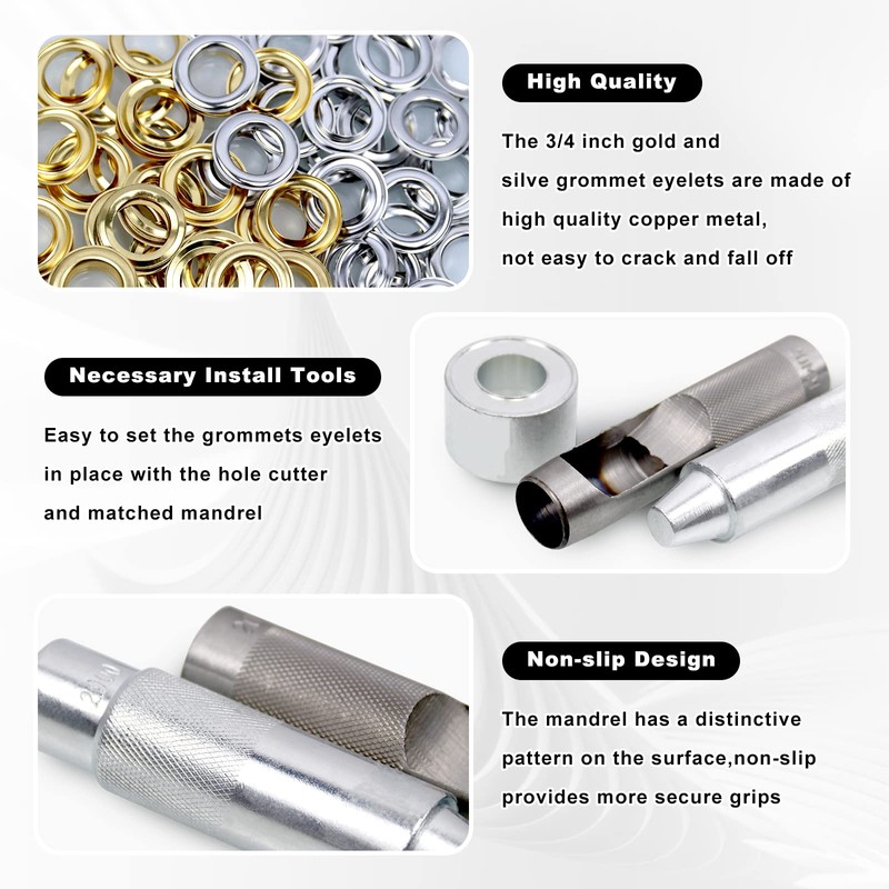 CNQLIS 50 Sets 3/4" Grommet Tool Kit, Grommet Setting Tool Copper Grommets Eyelets, 2 Colors,with 3 Pcs Install Tool
