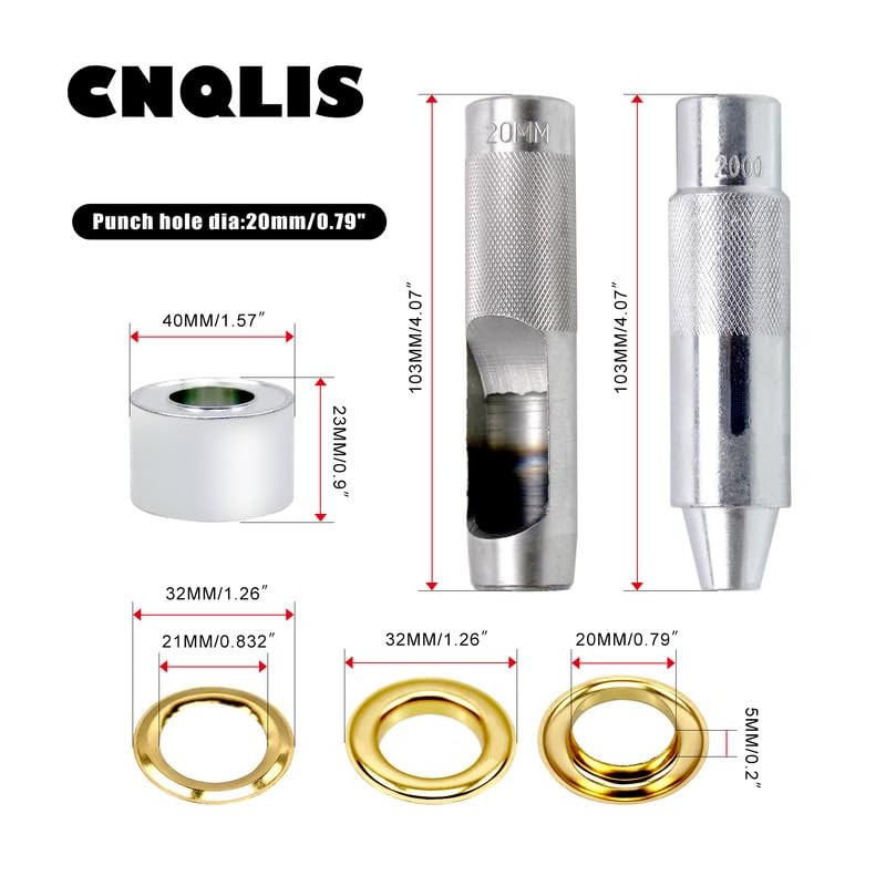 - 【Kit Contains】Kit kit includes 1 base, 1 hole punch, 1 installation tool and 50 sets of eyelets (gold and silver).