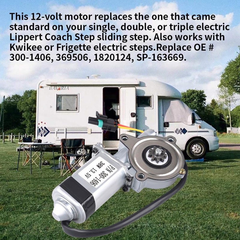 - Fitment:This motor replaces the one that came standard on your single, double, or triple electric Lippert Coach Step sliding step. Also works with Kwikee or Frigette electric steps.Replace OE # 300-1406, 369506, 1820124, SP-163669