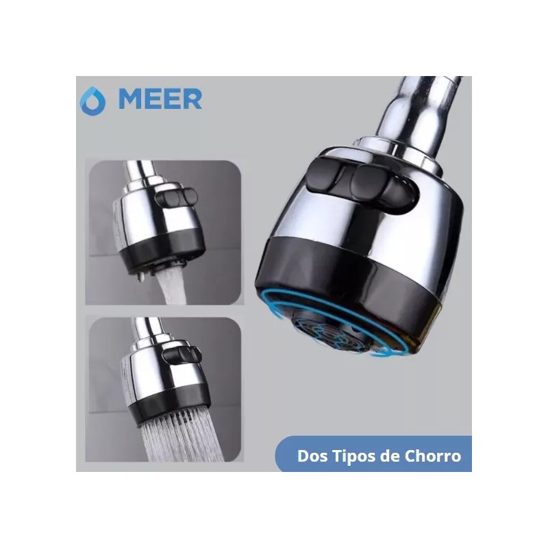 Modo regadera para múltiples chorros con una presión más alta. Con el otro modo, sale un chorro más grande. La mezcladora también cuenta con un cuello flexible.