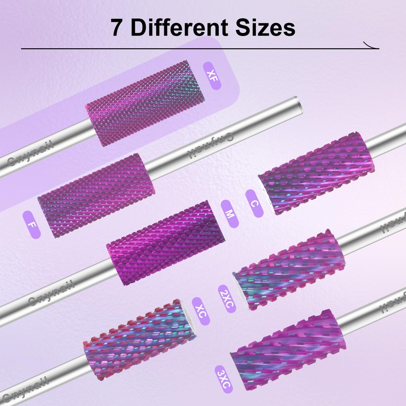 Cnynail 3/32" Small 5.35MM Barrel Bit Tungsten Carbide Nail Drill Bit Safety Bit for Gel & Acrylic Removal, 2- Way Rotating Efile Tip, Salon Electric File Accessory (XF Girt, Purple)
