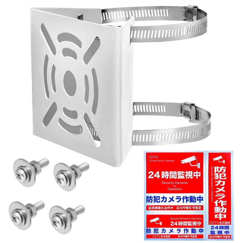 - Can be installed immediately with security cameras. Comes with a full set of essential items. Set Includes: (Mounting Hardware) Rustproof and Anti-Static Treatment; (2 x Stainless Steel Bands) All Stainless Steel with Screws (4 x Set of 4) Stainless Steel 4M Size Bolts, Nuts and Washers (3 x Original Security Stickers); Improved Version (Instruction Manual) (English Language Not Guaranteed) You can place anything We have designed and installed 12 mounting holes and 1 larger hole in the middle