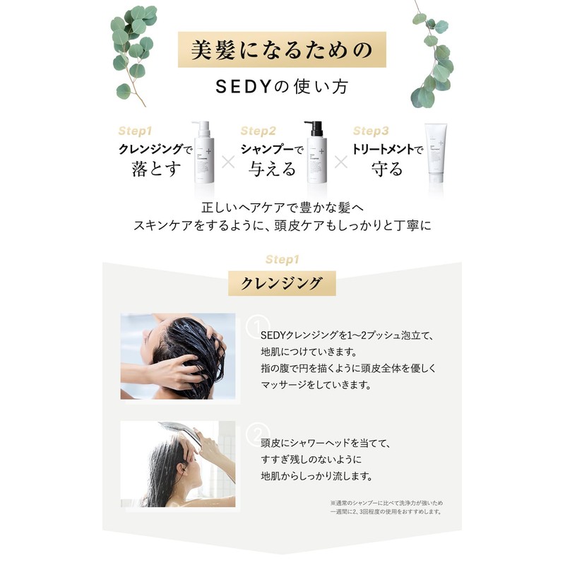 • How to use: After brushing, wet your hair thoroughly and use the SEDY cleansing in the palm of your hand. Cleansing agent is applied directly to the skin instead of hair and gently massages the entire scalp in a circular motion on the belly of your fingers