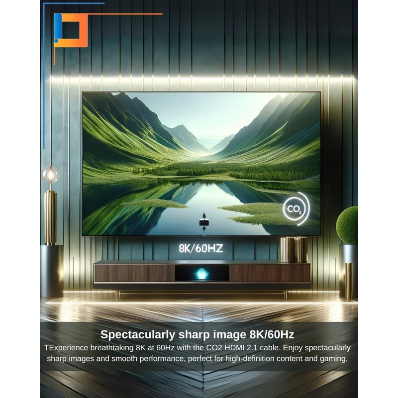 - Latest HDMI 2.1 standard - The CO2 cable supports the latest HDMI 2.1 standard and provides excellent video and audio quality as well as smooth display of content with resolutions of up to 8K/60Hz and 4K/120Hz. Get the best picture and sound quality when playing and watching movies at the highest resolution, without delay or stuttering.