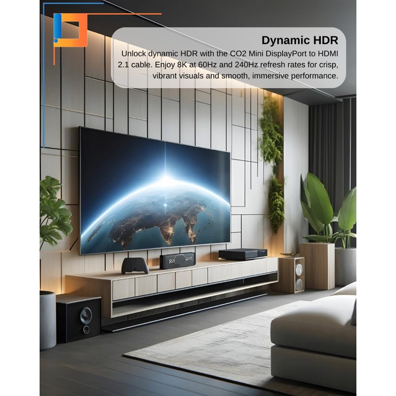 • Latest DisplayPort and HDMI standard - CO2 cable that supports DisplayPort 1.4 and HDMI 2.1, provides excellent video and audio quality. Compatible with the latest technologies, it supports 8K/60Hz and 4K/120Hz video transmission for crisp and smooth images. Get the best picture and sound quality when playing and watching movies at the highest resolution, without delay or stuttering.