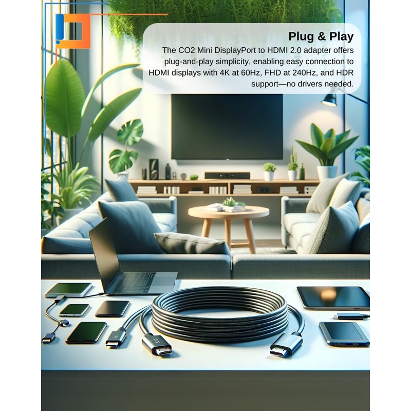 Co2 Mini DisplayPort to HDMI 2.0 4K/60Hz, 2K/144Hz, Full HD, Dynamic HDR DSC ...