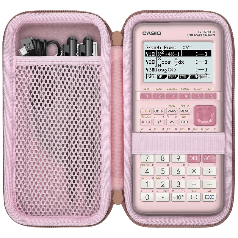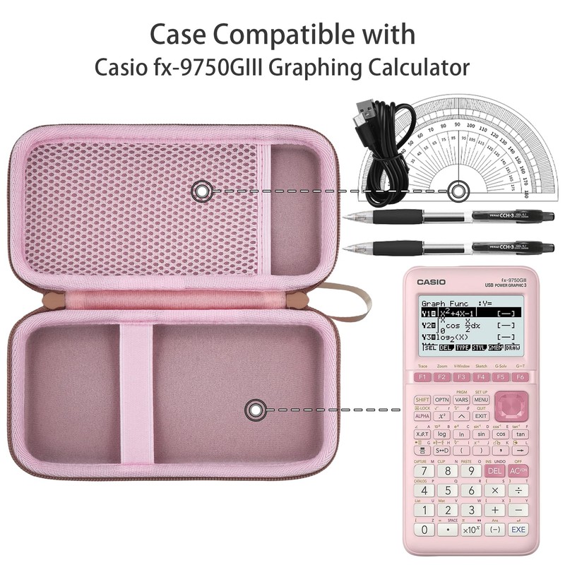- 【Tailored Interior with Elastic Strap and Mesh Pocket】This color graphing calculator case features a precision-molded interior for snug placement of your Casio 9750 calculator. An elastic band keeps your Casio fx-9750GIII graphic calculator from moving during transit. The built-in zipper mesh pocket organizes accessories like the data cables, pen, or geometry tools, making it perfect for students carrying the Casio fx 9860gii graphing calculator.