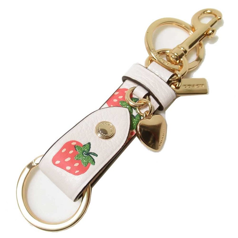 Coach CB613 IMCHA Women's Key Ring, Strawberry, Heart Charm, Trigger Snap, Outlet, white