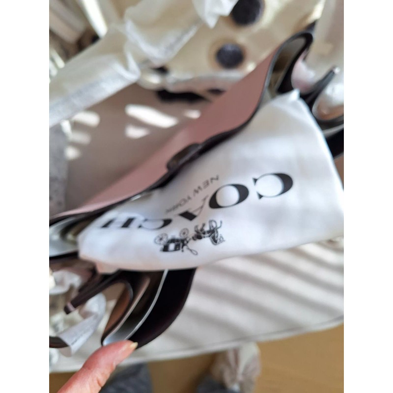 This beautiful Coach Colorblock shoulder bag is a perfect addition to any modern woman's collection. With a stunning silver exterior and beige lining, it features a snap closure, cross-body strap, inner pockets, detachable strap, inner dividers, adjustable strap, and multiple pockets, all in medium size. The bag has a solid pattern with a colorblock character and is made of fine leather material. Its hardware color is pink, and the handle/strap color is beige.