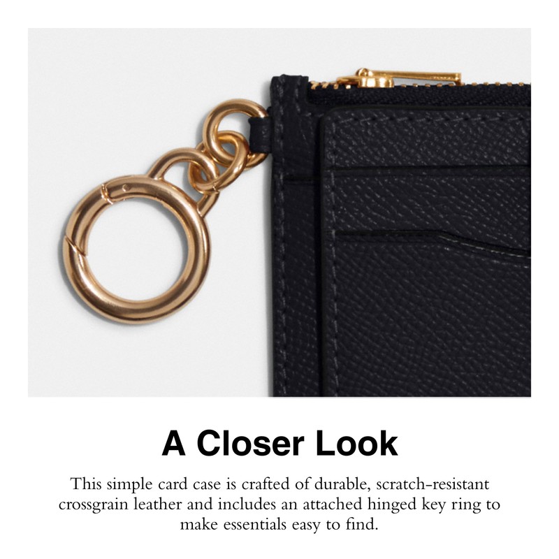 - Editor's Notes: Made of cross leather, this card holder has 3 card slots, ID window, snap closure and a zippered compartment to hold more cards or cash. Slip it in your pocket or pack it in your bag