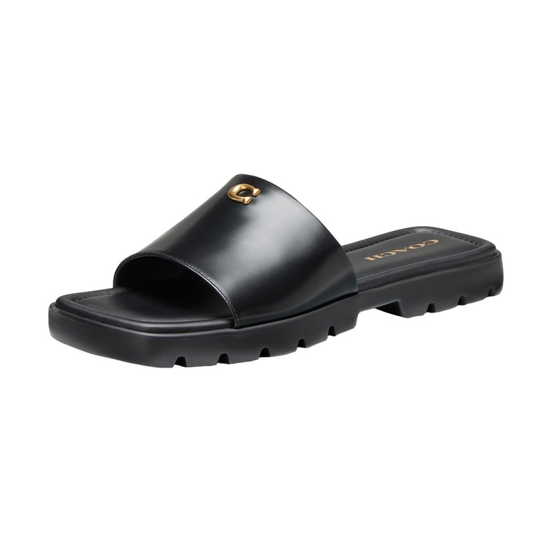 - Smooth Leather: These slip on sandals are crafted of supple leather & finished with our signature C