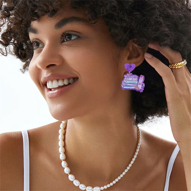 coadipress Teacher Earrings for Women Glitter Acrylic Colorful School Books Dangle Drop Earrings Creative Funny Earth Book Earring Graduation Appreciation Gifts Jewelry (Feather Book)