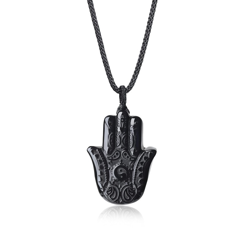 - This women's men's necklace is made with materials from black obsidian pendant to nylon cord, 1.46*1"(37*27mm) Black Obsidian Hamsa Hand Pendant