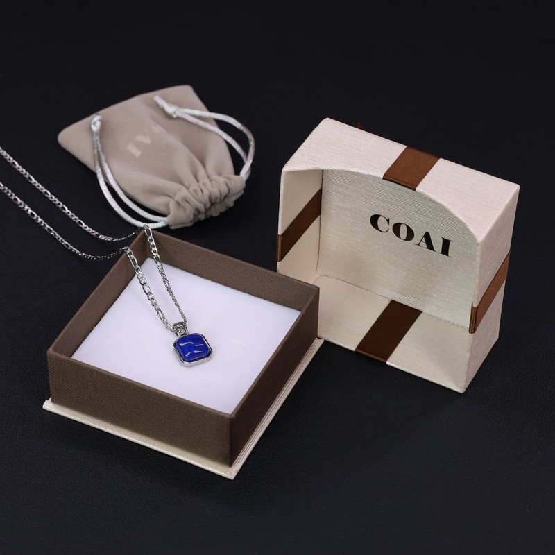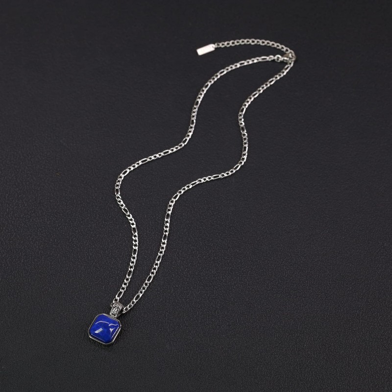 COAI Figaro Chain Square Lapis Lazuli Stone Pendant Necklace 45cm