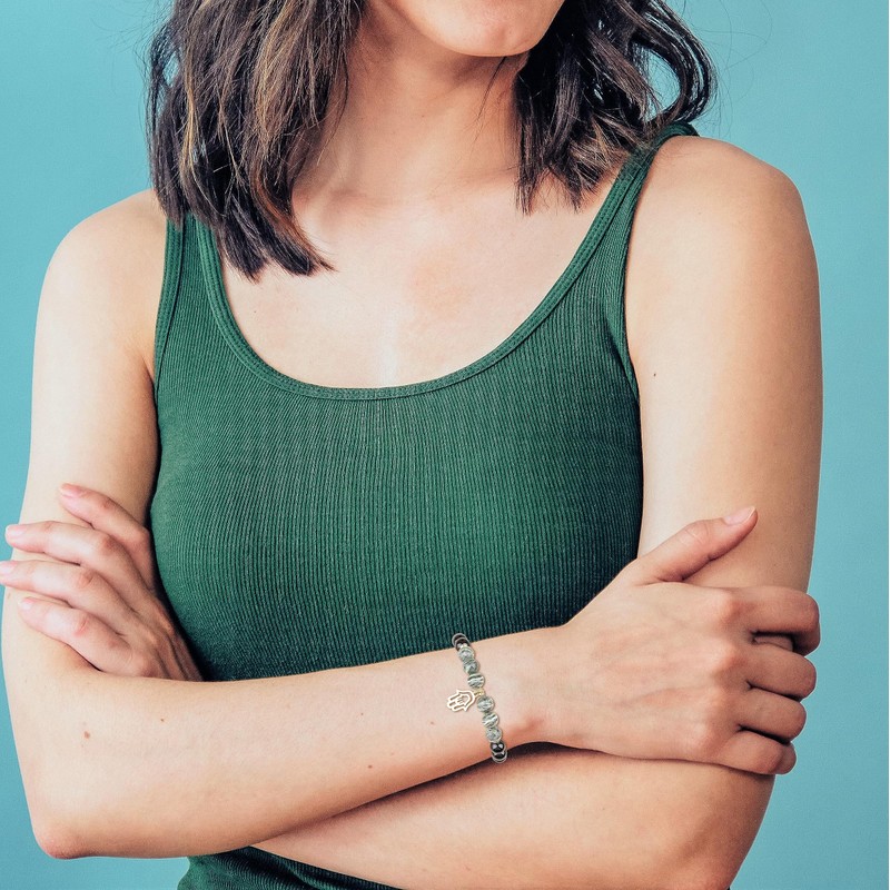 - Material: 8mm Black Tourmaline, Zebra Jasper; Stainless steel hamsa hand charm